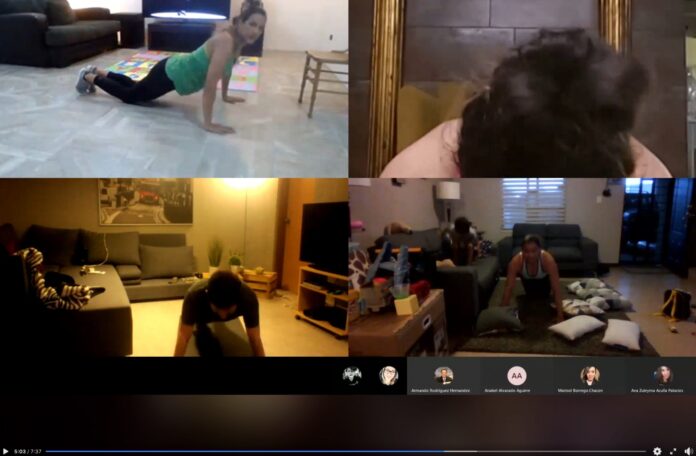 Para incrementar la cantidad de participantes del Reto 25 IADA, Cecilia Villar y David Macías invitaron a la comunidad universitaria a unirse a la transmisión de lunes a viernes a las 19:30 horas, mediante la plataforma Microsoft Teams y así realizar los ejercicios juntos de manera virtual.