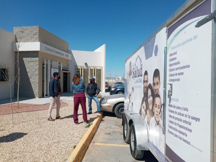 Ciudad Juárez, Chih. (UACJ) – Como parte de las actividades que la Universidad realiza para conmemorar el Día Internacional de la Mujer, en el Centro Comunitario UACJ se instaló un consultorio móvil con el que se brindará atención médica a las mujeres que hoy asistan a las instalaciones comunitarias.