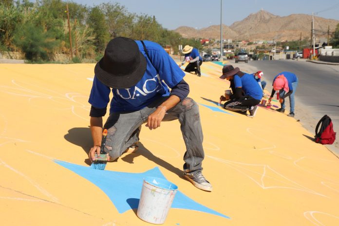 Ciudad Juárez, Chih. (UACJ) – En un acto de unión y servicio a la comunidad, autoridades universitarias y estudiantes de la UACJ llevarán a cabo la pinta de un mural como parte de los trabajos de intervención que esta institución realiza con el proyecto Cruzada en mi casa, de manera conjunta con el Municipio.