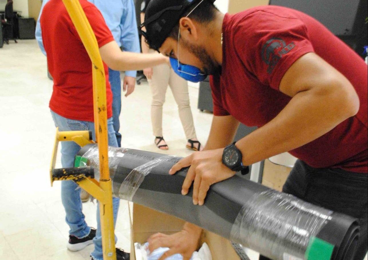 Ciudad Juárez, Chih. (UACJ). – Con el inicio de actividades no presenciales el próximo lunes 27 de julio en la Universidad Autónoma de Ciudad Juárez (UACJ), la Dirección General de Servicios Administrativos hizo entrega, en sus oficinas de Rectoría, de material a los cinco institutos y a las tres unidades multidisciplinarias, así como a otras áreas, para atender las medidas de prevención contra el COVID-19 entre la comunidad estudiantil, administrativa y manual.