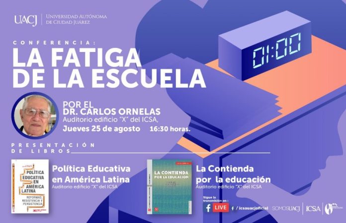 Ciudad Juárez, Chih. (UACJ) –La fatiga de la escuela es el nombre de la conferencia híbrida que ofrecerá el doctor Carlos Ornelas, profesor de la Universidad Autónoma Metropolitana, Xochimilco.