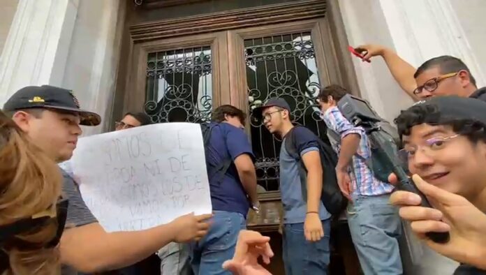 Fue Adrián García quien entabló comunicación con los manifestantes para escuchar sus demandas, solo que uno de los dirigentes señaló que son cinco representantes y que no se moverán de rectoría donde esperarán al rector.