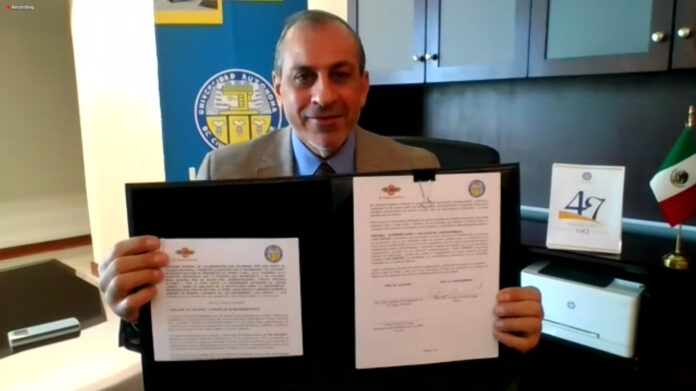 Ciudad Juárez, Chih. (UACJ) – Este miércoles 18 de noviembre, bajo la modalidad virtual, la Universidad Autónoma de Ciudad Juárez (UACJ) llevó a cabo una firma de convenio con el prestigioso Colegio Nacional.