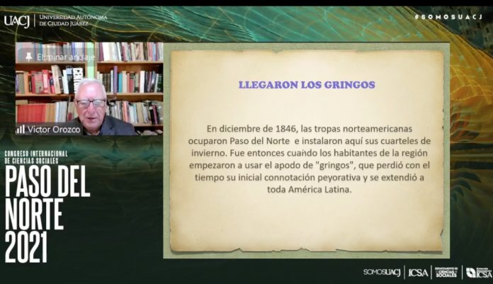 En su conferencia, el doctor Orozco comentó que, en esta región, es donde se ha encontrado el origen del apodo “gringo” para referirse a los norteamericanos, y dijo que con el tiempo dicha palabra perdió su connotación peyorativa y se extendió a toda Latinoamérica.
