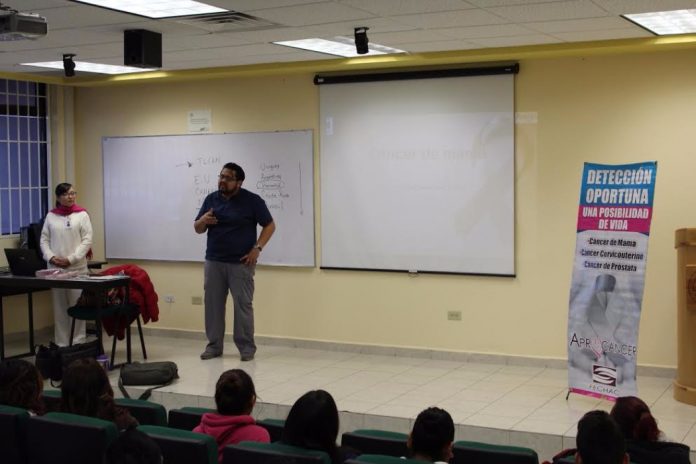 Ciudad Juárez, Chihuahua.- Ante el aumento de incidencia de cáncer de mama y cérvicouterino, además de buscar concientizar a los alumnos, este jueves integrantes del proyecto de Prevención de Aprocáncer impartieron una conferencia informativa a estudiantes de la Universidad Tecnológica Paso del Norte.