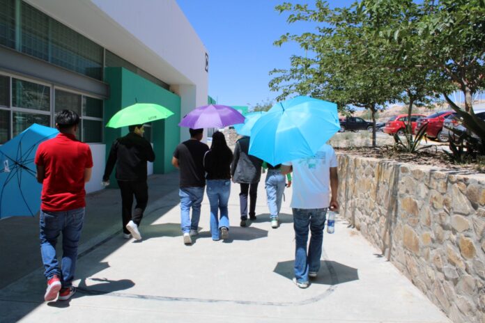 Ciudad Juárez, Chih .- Esta iniciativa consiste en prestar sombrillas a los miembros de la comunidad universitaria que tienen que desplazarse a lo largo del campus de un edificio a otro.