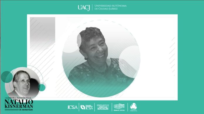 Ciudad Juárez, Chih. (UACJ) – «Los trabajadores sociales deben ver a las personas con las que trabajan con respeto, solidaridad y gusto, nunca con lástima, para que de esa manera confíen en ellos», recomendó la maestra María del Carmen Mendoza Rangel, en la plática con la que se inauguró la Cátedra Patrimonial Natalio Kisnerman in memoriam.
