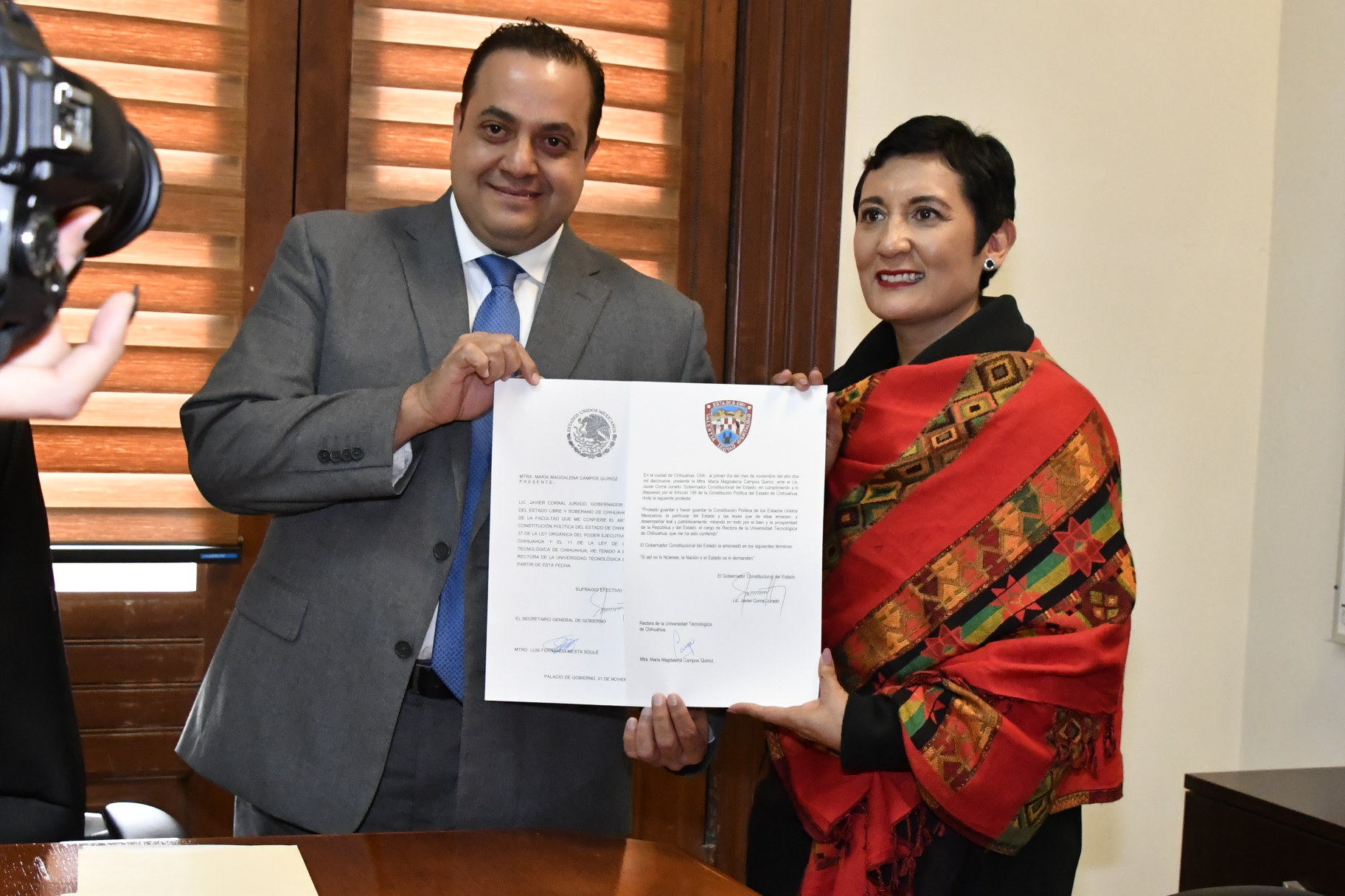 Chihuahua, Chih. – El director de la Consejería Jurídica de Gobierno del Estado, Francisco Javier Acosta Molina entregó el nombramiento oficial a María Magdalena Campos Quiroz como rectora de la Universidad Tecnológica de Chihuahua (UTCH).