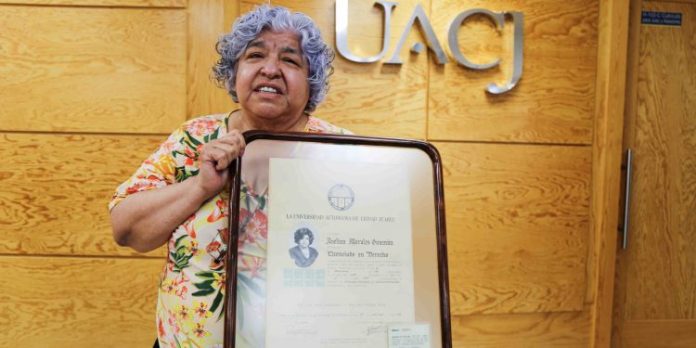 Ciudad Juárez, Chih. (UACJ) – Dentro de su trayectoria ha sido un ejemplo de dedicación y excelencia en el ámbito jurídico. Es la magistrada en retiro Avelina Morales Guzmán, la matrícula #1 de la carrera de Derecho en la Universidad Autónoma de Ciudad Juárez (UACJ), quien este día compartió experiencias y anécdotas con estudiantes y catedráticos de este programa en el Instituto de Ciencias Sociales y Administración (ICSA).