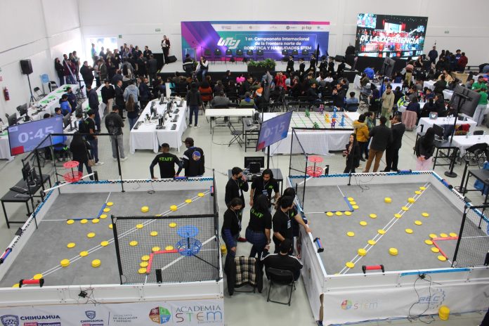 Ciudad Juárez, Chih .- Equipos de estudiantes de todo el país demuestran su destreza en robótica y habilidades STEM al participar en el Primer Campeonato Internacional 2023, que se celebra en la Universidad Tecnológica de Ciudad Juárez (UTCJ).