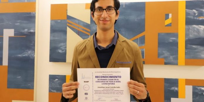 Ciudad Juárez, Chih. (UACJ) –Jonathan Josué Calvillo Solís, egresado del programa del programa de Química de la UACJ, obtuvo el primer lugar en el concurso de tesis de licenciatura que organizó la Sociedad Mexicana de Electroquímica en su trigésimo séptimo Congreso Nacional, realizado en la Benemérita Universidad Autónoma de Puebla (BUAP).