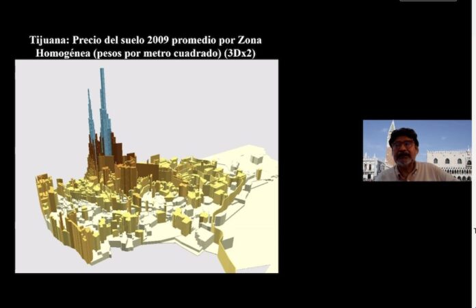 Ciudad Juárez, Chih. (UACJ) – El seminario Permanente de Estudios Urbanos del Instituto de Arquitectura, Diseño y Arte (IADA) recibió el 10 de septiembre en conferencia virtual a Tito Alejandro Alegría Olazábal, con el tema “Precios del suelo intraurbano, teoría explicativa y prueba con datos de Tijuana”.