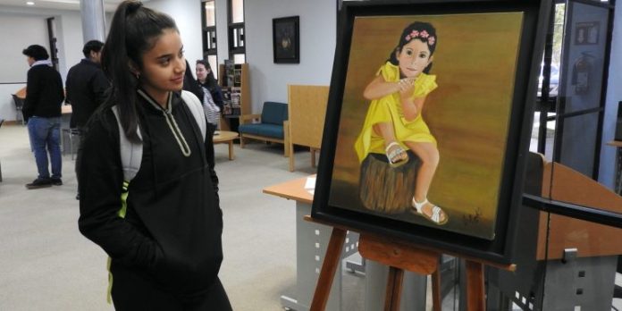 Ciudad Juárez, Chih. (UACJ) – ¿Qué me cambió la vida?, Otra escuela, El vendedor y Ella me cuida, son algunos de los títulos con los que se distinguen las 12 obras que conforman la exposición de pintura Niños de mi tierra, que estará disponible hasta el 24 de noviembre en la biblioteca del campus de la UACJ en Nuevo Casas Grandes.