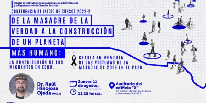 Ciudad Juárez, Chih. (UACJ) –En el marco del inicio de actividades académicas del semestre agosto-diciembre, el Instituto de Ciencias Sociales y Administración convoca a una conferencia en memoria a las víctimas de la masacre registrada en El Paso, Texas, en 2019.