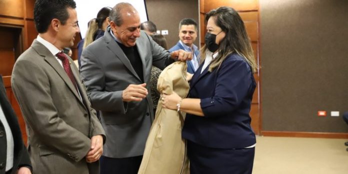La ceremonia protocolaria se desarrolló en el Aula Magna de la rectoría de esta casa de estudios, donde se entregaron 359 uniformes a secretarias de los diferentes institutos y divisiones multidisciplinarias de la UACJ.
