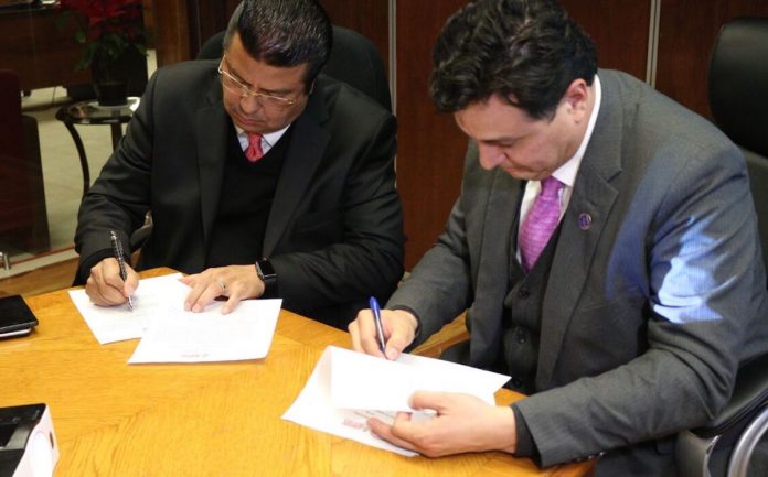 A través de la firma del documento, el Municipio iniciará los trámites legales para realizar la permuta del edificio en donde se ubica la Academia de Policía Municipal en avenida Henry Dunant, por un predio de 3.6 hectáreas propiedad de la UACH.