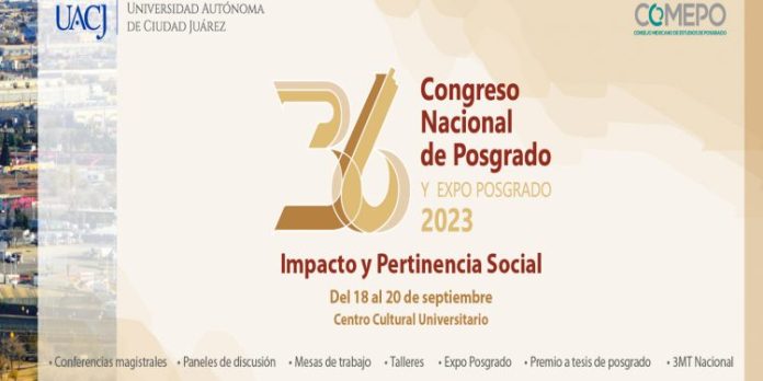 Ciudad Juárez, Chih. (UACJ) – A fin de plantear un diálogo sobre la pertinencia social del posgrado y su impacto en la sociedad y el entorno, el Consejo Mexicano de Estudios de Posgrado (COMEPO) y la Universidad Autónoma de Ciudad Juárez (UACJ), convocan a gestores académicos, investigadores y estudiantes a participar en el trigésimo sexto Congreso Nacional de Posgrado y Expo Posgrado 2023.